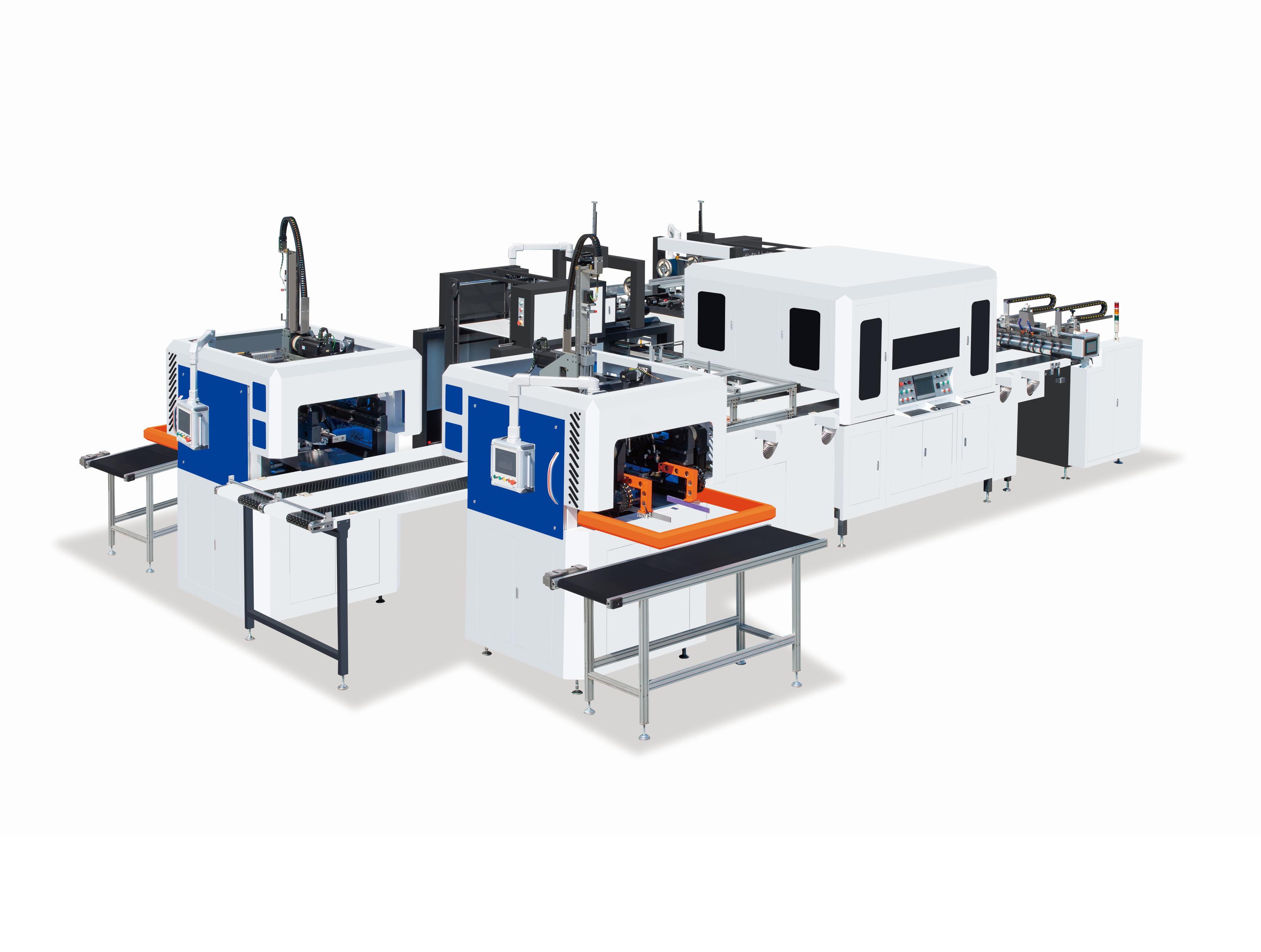 This machine adopts intelligent system, efficient and intelligent one-button operation, convenient and simple start-up and adjustment, double feeder paper feeding, top and bottom cover box (bottom box + cover box), and high efficiency in production, saving customers' storage space. The visual manipulator adopts Yamaha system with good stability and high precision. The corner wrapping machine adopts one-button start, and it only takes 5-10 minutes to adjust the machine. The molding machine adopts a full servo control system and it takes 3-5 minutes to adjust the machine. High inertia servo motor presses bubbles, no need to configure a bubble press machine.